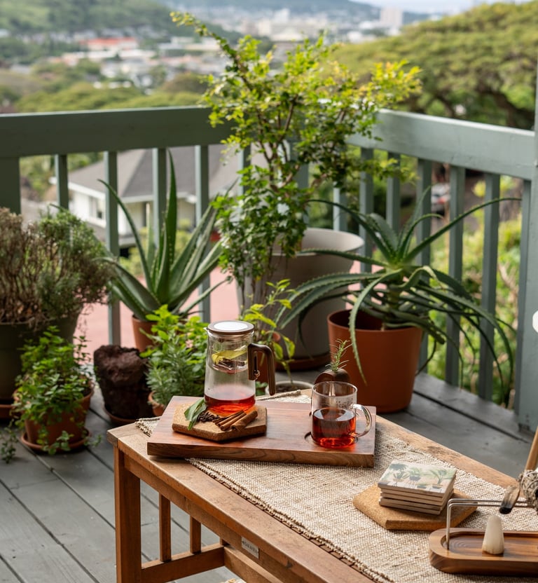 Together, we live in a treehouse in the heart of Hawai‘i, where we cultivate our garden of herbs.